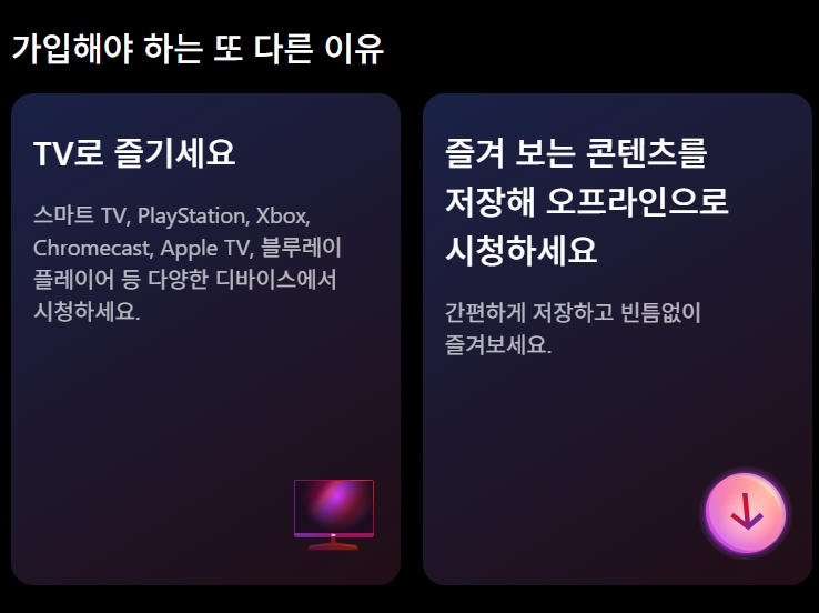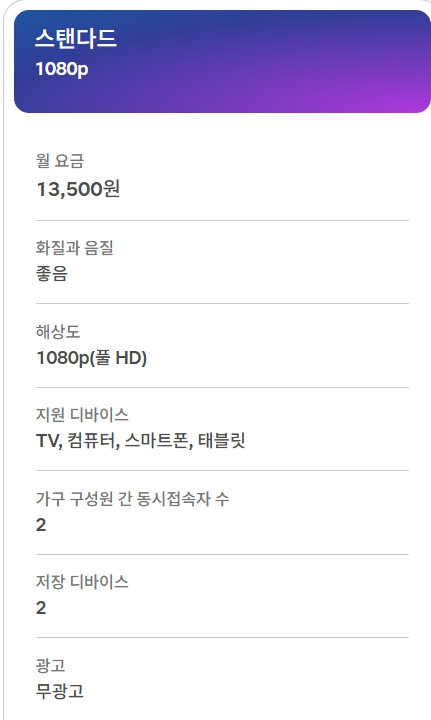 - 추천 대상 : 아이디 공유 가능한 사람. 고화질로 영화 보고 싶은 사람