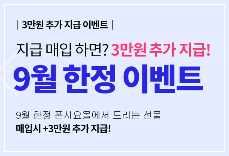 • 9월 3만원 추가 지급 이벤트 중입니다.
