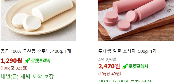 | 로켓와우 | 혜택 없음 | 전날 주문 새벽 배송 가능, 같은 상품이라도 로켓와우 회원은 할인 해줌 |