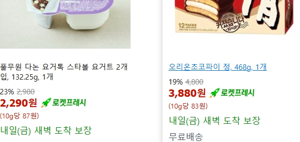 | 로켓직구, 프레시 | 이용 불가 | 할인, 당일 배송 가능 (19,800원 이상) |
