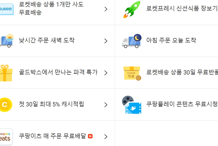 3. 쿠팡 이츠, 로켓 직구, 로켓 프레시 전부 가능 무료 배송