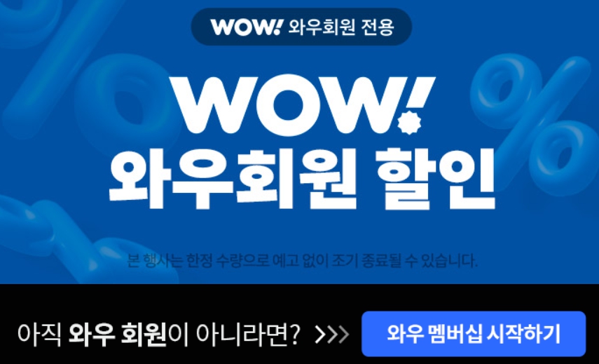 쿠팡 와우 회원이라면 오늘 주문 오늘 도착 혹은 새벽 배송 혜택 뿐만 아니라 와우 회원 전용 특가 상품을 누리실 수 있습니다. 일반적인 상품들도 와우 회원이라도 일반 회원에 비해 저렴하게 구입 가능합니다. 상품 아래 가격 확인시 '와우회원가'로 표시되니 참고하시기 바랍니다.